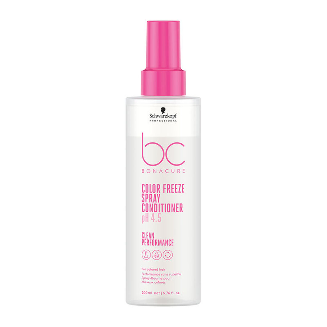 Le spray baume cheveux colorés BC Color Freeze de Schwarzkopf Professional démêle, hydrate et protège les cheveux colorés, éclaircis et légèrement poreux.