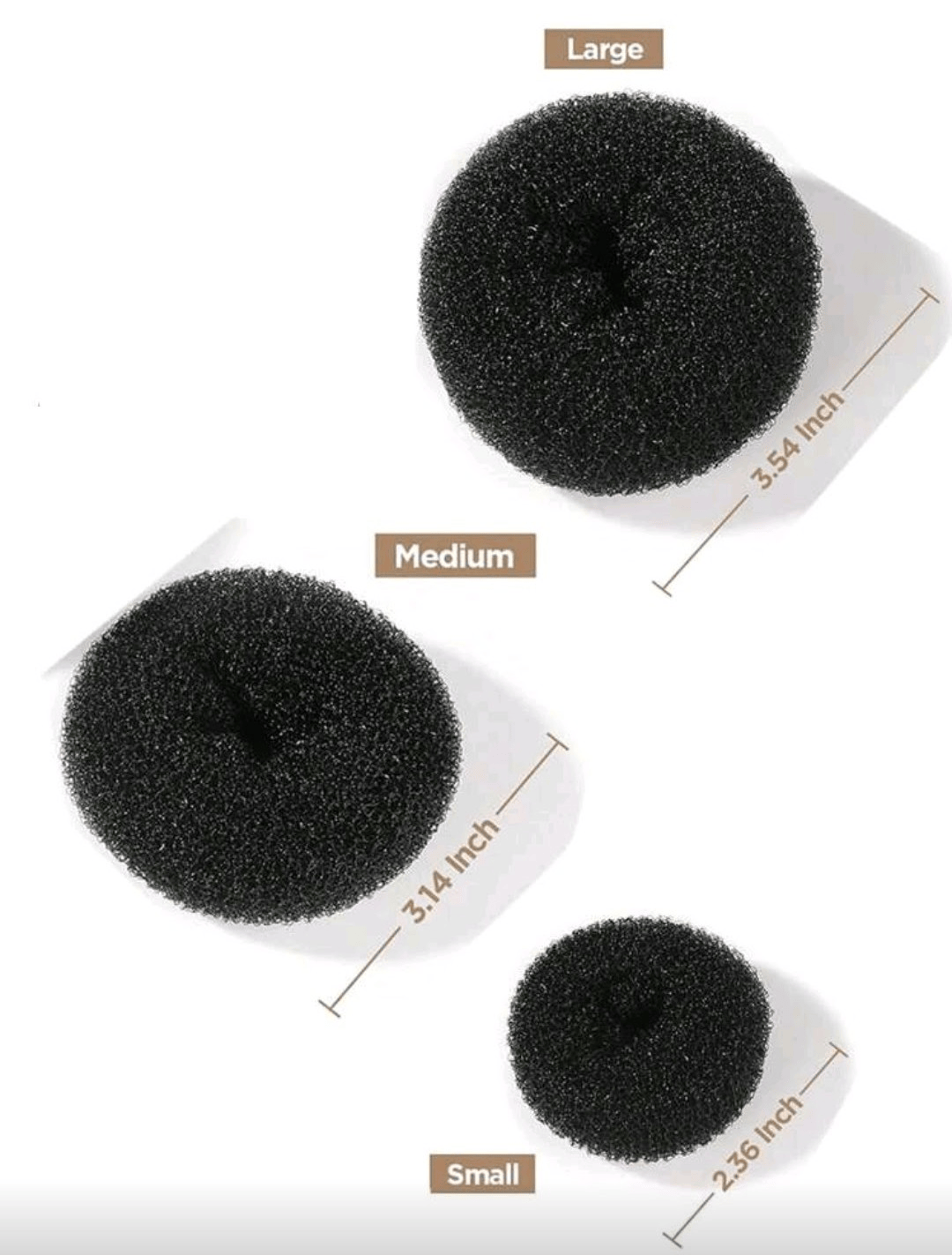 Lot de 3 donuts à cheveux noirs, de diamètres différents, idéals pour réaliser facilement des chignons nets et élégants. Adaptés à toutes les longueurs et épaisseurs de cheveux, ils offrent un maintien discret et un rendu naturel. Parfaits pour le quotidien comme pour les occasions spéciales.